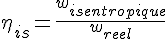 Prenons le cas d'une compression adiabatique quasistatique (on s'aide des diagramme enthalpie, entropie de la vapeur d'eau), on passe d'un état 1 connu à un état 2 ou la pression est connue avec un rendement isentropique de 0.80. Estce que ceci signifie que, pour déterminer l'etat 2, je vais devoir considérer la transformation à entropie constante, mesurer l'enthalpie correspondante, et multiplifier l'enthalpie mesurée par le rendement afin de trouver l'enthalpie reele ? Ce qui signifie que l'enthalpie isentropique est TOUJOURS superieure à l'enthalpie réele ? Ce qui revient à considérer que rendement=enthalpieréelle/enthalpieisentropique ? Est-ce correct ?