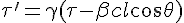 2) En utilisant les transformations de Lorentz, exprimer le tempsécoulé entre l'émission et l'absorption de lumière dans le référentiel R' en fonction de