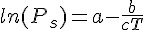 avec a, b, c paramètres caractéristiques du fluide, Ps (en bar) pression de vapeur saturante et T (en K), on a pour l’eau :