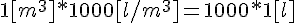 2)dans quel cas l'égalité mathématique est respectée, mais là, 1000 est une fois un nombre, une fois des litres par mètre cube.