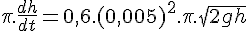 Alors je ne vois deja pas ce que represente la vitesse d'écoulement... la vitesse dans le trou ou la vitesse avec la quelle diminue la hauteur ?