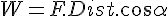 avec W le travail, F une force et Dist une distance parcourue par la force. Si la force se déplace dans le même sens que le mouvement, alors