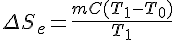 voilà un exercice simple, on a une masse m de capacité thermique massique C. Elle est à la température T0. On la fait passer à la température T1 grâce à un thermostat. Tout ce passe à volume constant.