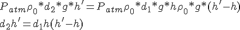 ). On dispose d'un tube en U rempli d'eau. A l'une des extrémités on verse une hauteur h d'une huile de densité d1, et à l'autre extrémité on verse une hauteur h' d'une huile de densité d2, de sorte que les sommets des colonnes d'huile arrivent à la même hauteur dans le tube. Pour que h' soit plus grand que h, il faut que d1 soit inférieur ou supérieur à d2? Nos avis son partagés... moi je dirais que d2>d1, mais ce n'est pas l'avis de la majorité du groupe. Et vous? Qu'en pensez-vous?