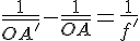 1/OA'-1/OA=1/OF tu résout est tu trouve,