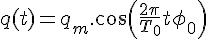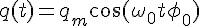 Si tu représentes une fonction sous sa forme sinusoïdale (classique comme q(t) proposé ci-dessus), tu ne peux trouver que le cosinus de la phase à l'origine (au facteur amplitude près) qui correspond à l'intersection de la sinusoïde avec l'axe des ordonnées.je ne comprends pas ce que représente concrêtement la phase à l'origine.. serait-il possible de la dessiner sur un graphique, car nulle part je ne la trouve...