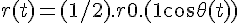 Une particule ponctuelle M décrit une cardioïde, dont on rappelle, dans le référentiel fixe R, muni du repère (O, ex, ey), l'équation en coordonnées polaires r(t) = 1/2 r0 (1+cos(t)) où à l'instant, r(t) répresente la longueur du rayon-vecteur