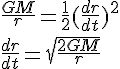 La vitesse en r est v = racine[ 2Gm ( 1/r - 1/r0) ]