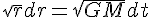 ce qui donne t - t0 = intégrale de r0 à r [ dr / racine[2Gm ( 1/r - 1/r0)] ]