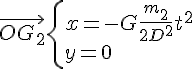 Le deuxième astre est a une distance D du premier, son centre d'inertie G2 est sur l'axe.