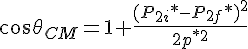 Et pareil que pour l'angle de diffusion de tout à l'heure, cette fois on nous balance les expressions de p* et de l'angle de diffusion dans le référentiel du centre de masse :