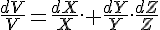 ln V = ln X + ln Y + ln Z que tu différencies en