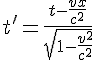Pour cet exercice J'ai considérer le référentiel O de la terre et le référentiel O' qui correspond à la fusée. Le référentiel O' s'éloigne donc du référentiel O à une vitessepar rapport à O. J'ai ensuite utilisé la formule de transformation des vitesses suivantes :