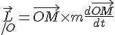 Le vecteur moment cinétique est le produit vectoriel du vecteur OM et du vecteur quantité de mouvement ( = masse * vecteur vitesse), comme la souligné Zoup1.