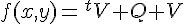 où V est le vecteur (colonne) de composantes (x,y), t désigne sa transposée (le vecteur ligne donc) et Q une matrice 2x2 dont tu trouveras facilement les coefficients. Pour l'énergie cinétique, tu auras donc un vecteur v qui aura pour composantes les dérivées temporelles des coordonnées, ce que tu peux voir comme la dérivée temporelle du premier vecteur. Après, tout dépend des détails de ton exo et de ce que tu veux faire, mais le gros de l'idée est là...