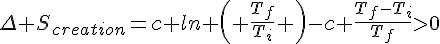 en fait, j'ai un problème dans un exercice de base de thermodynamique, et ni mon cours, ni mes livres ne m'aidaient vraiment... Donc voila: on doit déterminer la variation d'entropie d'une certaine masse d'eau (on a sa masse, sa tampérature, et également la valeur de c) mise en contact avec un thermostat (on a aussi sa température), celle du thermostat, puis déterminer la création d'entropie.