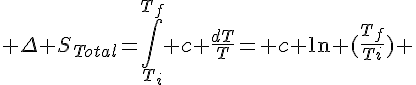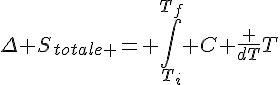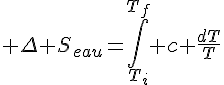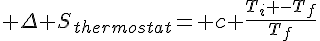 Pour l'eau, vu que c'est une phase condensée, j'ai utilisé la formule obtenue a partir d'une identité thermodynamique: dS= CvdT/T + nRdV/V => dS=CvdT/T (en passant,, au bout d'un moment, l'eau prend la température du thermostat, je suppose?)