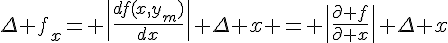 par une droite. La pente de cette droite est donnée par la dérivée de f par rapport à x, calculée au point xm. L'incertitude sur f(x), s'obtient alors en approximant la pente de la droite par: