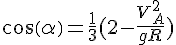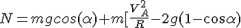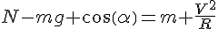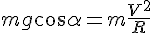 mg*cosα = m*v2/R, on élimine la masse, on obtient :