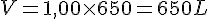650 = (5,0 x 1,0) x h