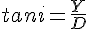 Quel relation lie Y,D et i ? --> Par trigonométrie, je dirais que tan i = Y/D ?