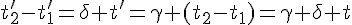 Je ne comprends pas pourquoi ces deux situations équivalentes ne donnent pas la même relation entre t et t'. (J'aimerais trouver pour (eq2):En effet, en combinant (eq1) et (eq2), on arrive à une absurdité: