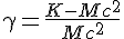 Quel est le gamma relativiste d'un faisceau de nickel 58 qui possède une énergie cinétique de 75 MeV/A sachant que sa masse vaut M=58 uma avec uma=931 MeV/c²