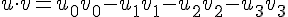 J'ai trouvé dans un cours de relativité restreinte la formule définissant le produit scalaire de deux quadrivecteurs. J'ai cherché sur un internet une explication, mais je n'en ai pas obtenue une claire. Voilà donc ce que j'ai compris, de ce que j'ai pu trouver ci et là, mais il risque d'y avoir quelques imprecisions, voire quelques erreurs :