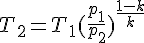p1^(1-K)*t1^K=p2^(1-k)*T2 ^k