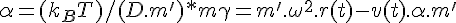 Bonjour,I EXPOSEJ'étudie le mouvement d'une particule trés petite entrainée par un flux gazeux dans un hélicoide. Cette particule se déplace suivant l'axe des X à la vitesse du flux vecteur suivant cet axe et suivant les axe Y et Z suivant une trajectoire semi-sinusoidale suivant ces axes.La particule est injectée dans le flux à l'axe X de l'hélicoide.Elle va etre soumise à une force centrifuge suivant r qui va lui communquer une vitesse suivant r qui sera freinée par la résistance des molecules du gaz vecteur.Dans notre cas nou considérons que la molécule suit les règles de la cinétique des gaz et non de stokes.Cette force de freinage, en cinétique des gaz, s’exprime selon Fick Einstein :F=( KBT) .V)/D *-*KB est la constante de BOLTZMANN* = 1,38E-23 en Joule/°K-*T la température absolue en °K-*V la vitesse relative des molécules de polluant par rapport aux molécules du vecteur.-*D le coefficient de diffusion du polluant dans le vecteur en m2/s. Le coefficient de diffusion du dioxyde de carbone dans l’air est égal a à 1,40E-04.*La molécule est soumise à une force qui est la force résultante composée par la force centrifuge et la force de freinage :F(résult) = (m’.ω2.r(t)) – ( KBT .v(t)/D)* = m.γ **** (3)On pose : α = ( KBT )/(D.m’)* mγ = m’.ω2.r(t) – v(t).α.m’Ce qui donne : γ = ω2.r(t) - v(t).α soitd2r/dt2) = -α.(dr/dt) + ω2.r(t)On cherche une solution de forme r(t) =* A exp(ω.t)On cherche les racines du polynôme caractéristique :ω2* + αω – ω02=0 où ω0 est la vitesse angulaire moyenne.Ces racines sont :-*φ1 = [ (-α + racine2( α2 + 4 ω02)] / 2-*φ2 = [ (-α - racine2(α2 + 4 ω02)] / 2La solution est donc de la forme :r(t) = A1 exp(φ1.t) + A2 exp(φ2.t)Avec les conditions limites suivantes : r0 = R0** et v0 = 0,on obtient :r(t) = ( R0 / (φ1- φ2)) . [φ1 exp(φ2.t) - φ2 exp(φ1.t)]****************** (etv(t) =* ( R0 . φ1. φ2) / (φ1- φ2)) . [ exp(φ2.t) -* exp(φ1.t)]************** II - QUESTIONS