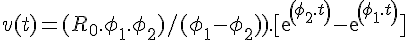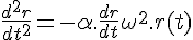 d2r/dt2) = -α.(dr/dt) + ω2.r(t)On cherche une solution de forme r(t) =* A exp(ω.t)On cherche les racines du polynôme caractéristique :ω2* + αω – ω02=0 où ω0 est la vitesse angulaire moyenne.Ces racines sont :-*φ1 = [ (-α + racine2( α2 + 4 ω02)] / 2-*φ2 = [ (-α - racine2(α2 + 4 ω02)] / 2La solution est donc de la forme :r(t) = A1 exp(φ1.t) + A2 exp(φ2.t)Avec les conditions limites suivantes : r0 = R0** et v0 = 0,on obtient :r(t) = ( R0 / (φ1- φ2)) . [φ1 exp(φ2.t) - φ2 exp(φ1.t)]****************** (etv(t) =* ( R0 . φ1. φ2) / (φ1- φ2)) . [ exp(φ2.t) -* exp(φ1.t)]************** II - QUESTIONS