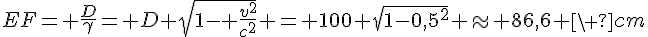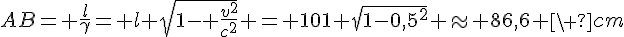 , en translation rectiligne à une vitesse v=0,5c (le bâton est orienté sur la même direction que la vitesse).