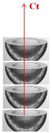 Je préfererais mettre des sphères concentriques, incluse dans une sphère max représentant l'espace local clôt de l'expérience, avec l'observateur au centre, et aligner chaque instant ainsi décrit sur un axe.