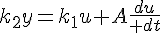 Je dois trouver la relation (différentielle a priori) entre l'allongement du ressort 1, noté u (imaginons qu'on tire dessus au niveau de son extrémité libre...), et l'allongement de ressort 2 noté v. Il faudra peut-être pour cela noter w l'allongement du piston...