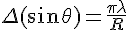 Delta(sin(theta)) = 0.956-0.574=0.382 = pi*lambda/(2R)