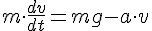 Dans l'eau, il est soumis de plus à une force F proportionnelle à la vitesse: F=-a*V