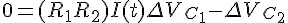 i est l'intensité traversant R0, i1 est l'intensité traversant R1, i2 est l'intensité traversant R2. On pose. Enfin, q1 est la charge du condensateur C1, et q2 celle du condensateur C2.
