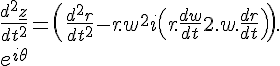 En partant simplement de l'écriture comlexe de la position et en dérivant deux fois par rapport au temps, il est facile de calculer l'expression des accélérations d'entrainement et de Coriolis.(dérivée d'exp complexe et fonction composée)