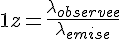 1+z=Lambdaobservée/Lambdaémise où Lambda est la longueur d'onde,