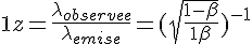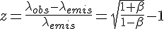 -> 1+z=Lambdaobservée/Lambdaémise=(Racinecarré((1-beta)/(1+beta)) ) -1