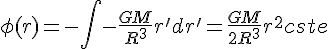 J'ai regardé comment l'on pouvait déterminer le potentiel gravitationnel dans une boule homogène de rayon R et de masse totale M, et il y a un détail que je ne comprends pas vraiment :