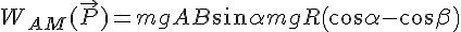 1) Exprimer le travail du poids du skieur entre le point A et le point M caractérisé par l'angle beta que fait OM avec la verticale.