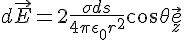 Pour ce faire on utilise deux éléments de surfaces ds1 et ds2 diamétralement opposés qui génère deux éléments de champsOn considère un plan P infini uniformément chargé avec une densité surfacique de charge. L'axe Oz est perpendiculaire au plan et son origine O appartient au plan P. Déterminer l'expression du champ électrique en fonction des données du problème ( on choisira ds en coordonnées cylindrique).
