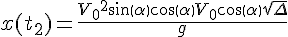 et donc x =[Vo.cos(alpha).2Vo.sin(alpha)] /g