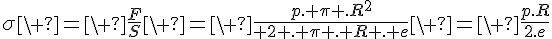 - si e est l'épaisseur et R est le rayon de la sphère à mi-épaisseur (pour une épaisseur < R/10), la contrainte est calculée pour une force correspondant à la pression appliquée sur l'aire de la face de la demi-sphère et une section égale à la section diamétrale de la sphère soit :