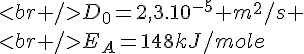 Avec des résultats expérimentaux, des mesures du coefficient de diffusion à plusieurs températures, je trouve que l'énergie d'Activation est de l'ordre de 800kJ /mol, mais je ne vois pas ce que ca représante.