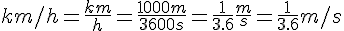 voila en fait j'ai un probleme, c'est que je ne sais pas comment changer d'unité mais quand on a par exemple des km/h en m/s (bon la ok on multiplie par 3.6 et encore je suis pas sur ) mais d'ou sort ce 3.6 ?