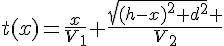 2 ) En optimisant le temps de parcours pour qu'il soit minimum calculer l'abscisse x du point M où le marcheur doit obliquer. le réssultat sera exprimé en fonction des données V1, V2,h,d.