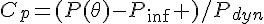 On considère le coef de pressionavec P_inf la pression statique en dehors de la couche limite, et P_dyn la pression dynamique de l'écoulement.