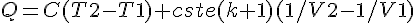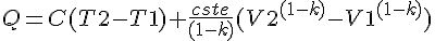 "On considère une transformation quasistatique d'un gaz parfait, polytropique d'indice k, d'un état 1 défini par p1,T1 vers un état 2, défini par T2. Exprimer la quantité de chaleur échangée au cours de la transformation. En déduire la valeur de k si la transformation est de plus adiabatique."